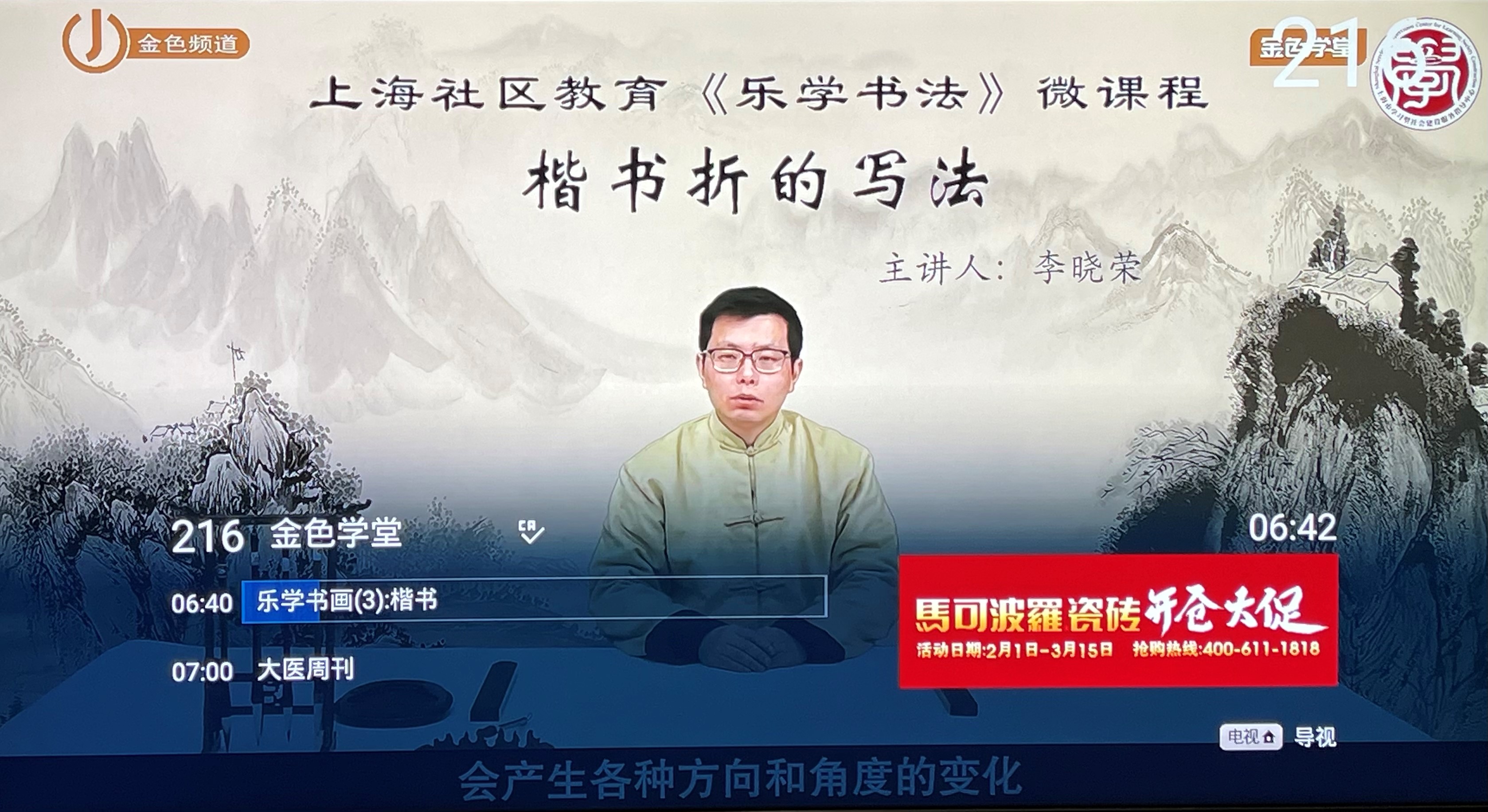 继移动端版本上线后,3月1日起,面向50+人群的全媒体终身教育平台“金色学堂”正式登陆电视频道,这是上海市教育委员会与上海广播电视台、上海文化广播影视集团有限公司(SMG)、东方明珠新媒体股份有限公司(东方明珠)继“空中课堂”之后联手打造的又一在线教育服务平台。上海地区用户可以通过有线电视标清16频道、高清216频道,百视通IPTV的上海电信标清20频道、高清120频道,上海移动和联通标清220频道、高清20频道观看内容,移动端可下载百视TV APP进行学习,所有内容均以公益免费的方式向全体上海市民开放。这也是东方明珠不断深耕教育垂直类领域,持续丰富BesTV+流媒体视频平台优质内容的重要举措,助力上海数字化转型和“老有所学、老有所乐”的学习型社会建设。