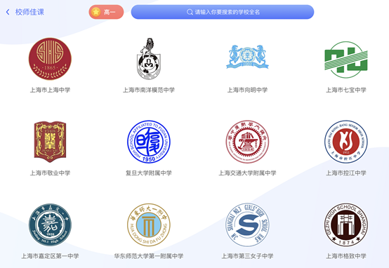 结合广大师生的关注与需求,新版空中课堂设置了“校师佳课”专区,充分展示上海中小学讲师风采,提供课程精讲内容,分享学科学习经验。包括上海中学、七宝中学、复旦大学附属中学、上海交大附属中学等在内的学校均设有独立入口,一键即可查看该学校讲师的所有课程,不同学科课程重新组合,满足学生对不同讲师授课的需求。