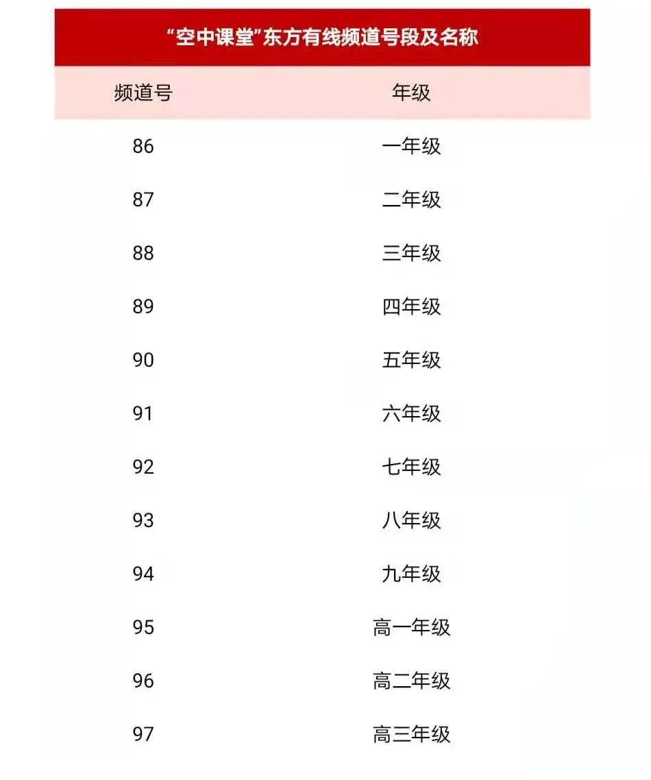 有线电视直播频道序列号为86到97,百视通IPTV直播频道序列号为686到697,分别对应小学至高中12个年级。移动端用户可在App store或各大安卓应用市场下载百视TV的APP和Pad版。OTT用户可在各大智能电视厂商的应用商店下载安装BesTV优视猫再进入“空中课堂”专区学习。