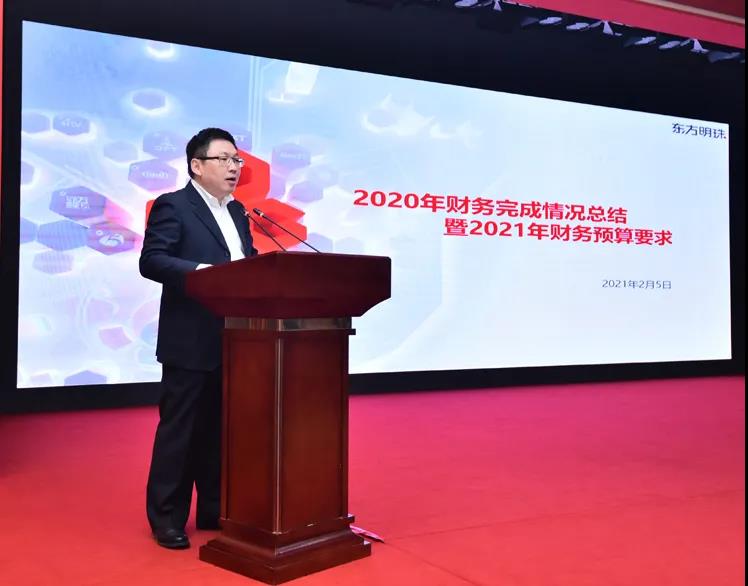总会计师金晓明总结东方明珠2020年财务目标完成情况,提出2021年财务预算总体要求,并结合具体预算目标,一企一策地对各单位2021年财务侧重工作予以布置,同时明确2021年财务重点工作将围绕促转型、控风险、增效益三方面持续推进。