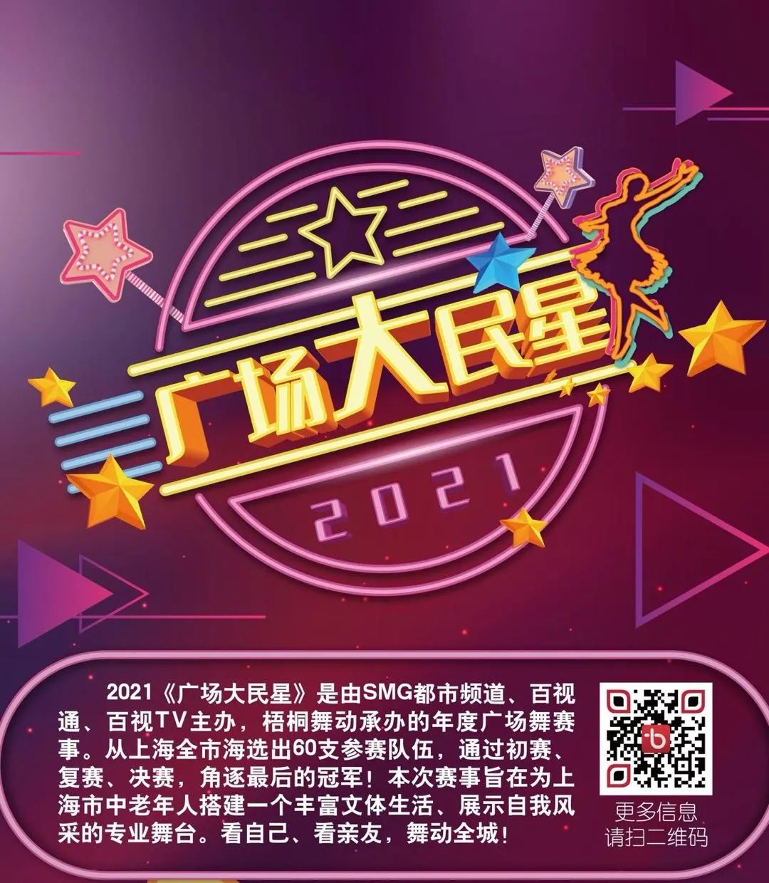 一档汇集民间高手的广场舞大赛《广场大民星》已拉开帷幕!作为兼具运动和娱乐功能的健康生活方式,广场舞因其低门槛、易上手等特点,正在吸引越来越多爱好者加入,由东方明珠新媒体股份有限公司旗下流媒体旗舰产品百视TV APP,百视通IPTV、OTT及上海都市频道呈现的《广场大民星》将为沪上众多广场舞团提供一个丰富文体生活的专业舞台,让更多人看到当代中老年人积极向上的精神风貌!