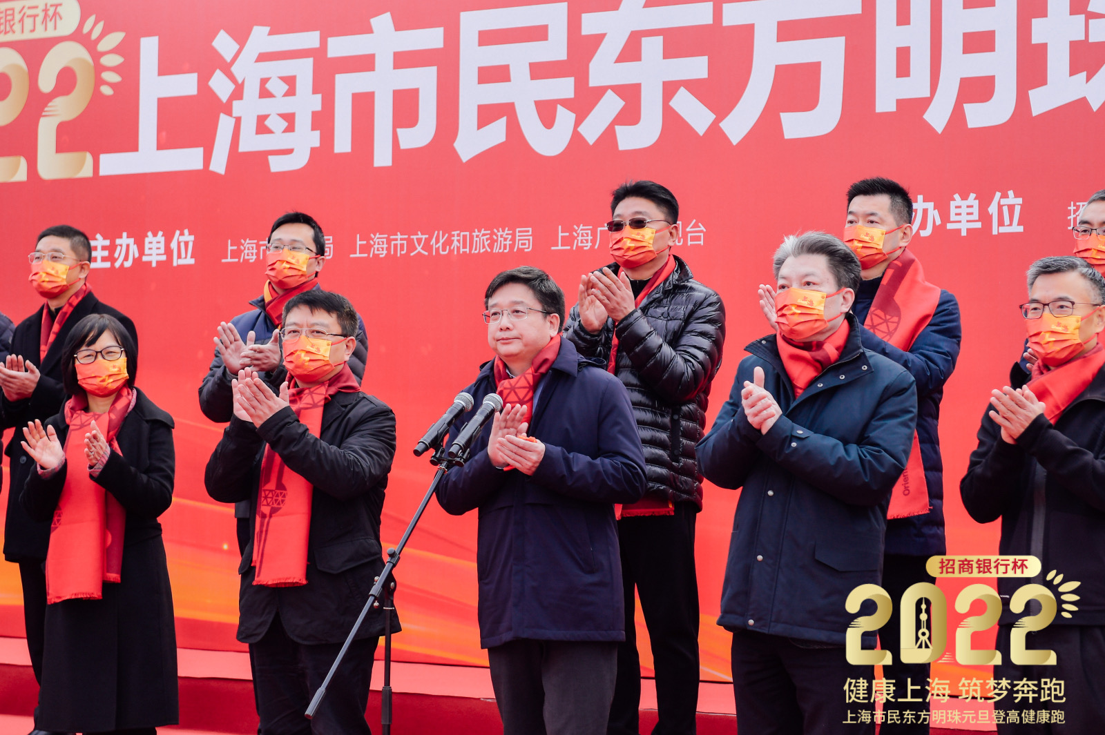上海市副市长陈群宣布2022上海市民东方明珠元旦登高健康跑开幕。