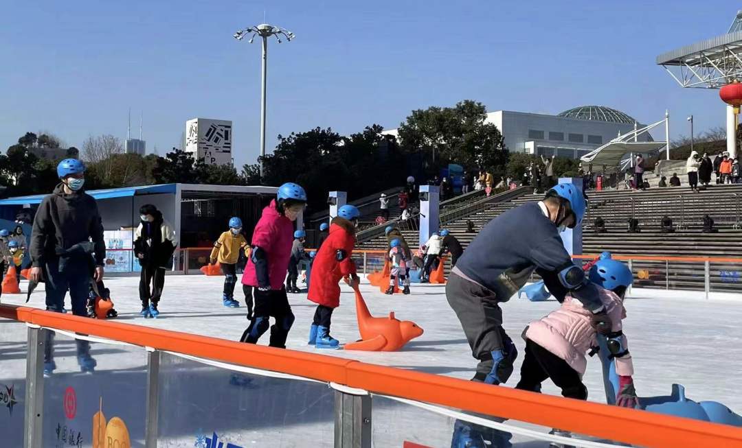 春节假期正值冬奥进行时,东方明珠广播电视塔多次为运动健儿亮灯,致敬奥运精神!塔下城市广场近600平米的大型露天真冰滑冰场,更是让游客走上冰面,尽情体验冰上运动的魅力。