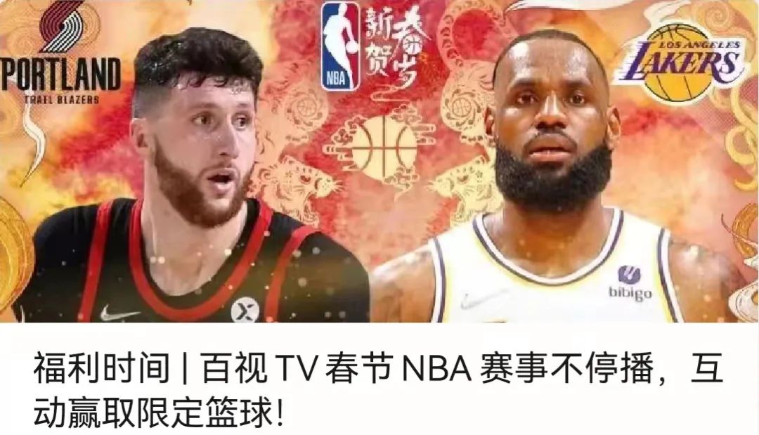 春节期间,百视TV为平台超过10万体育会员,提供了14场精选NBA赛事。同时,百视TV还邀请了互联网体育界的知名博主进行解说,陪伴球迷一起快乐看球,更为球迷们提供了丰厚的NBA观赛奖品和福利。