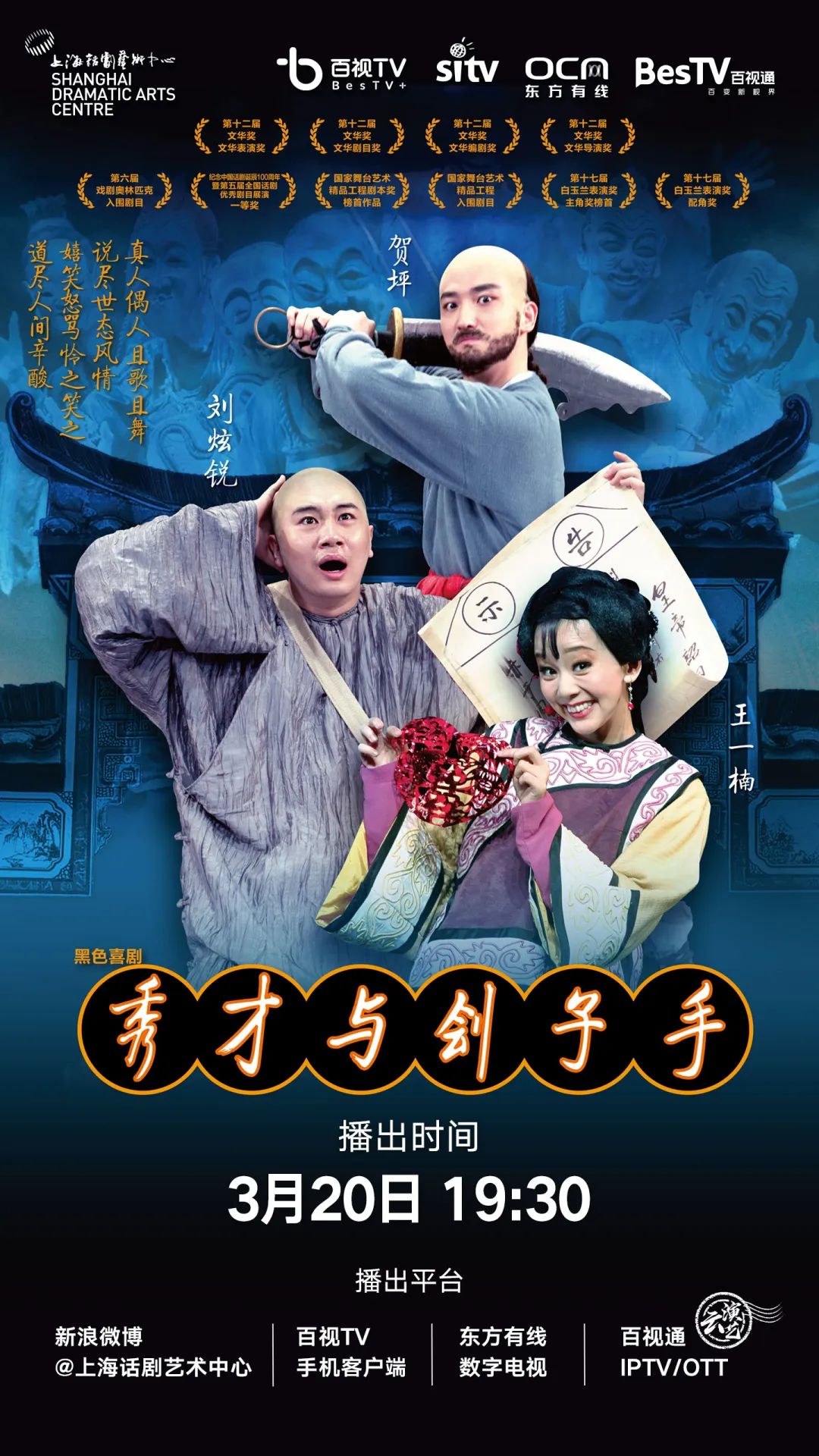 3月15日起,上海话剧艺术中心就率先开动,每晚19:30在百视通IPTV、互联网电视,东方有线,百视TV APP等新媒体平台限时播出一部精选优秀话剧剧目。已经上线的《商鞅》《追梦云天》《冒牌人生》等剧作都收到了观众的热烈反响。