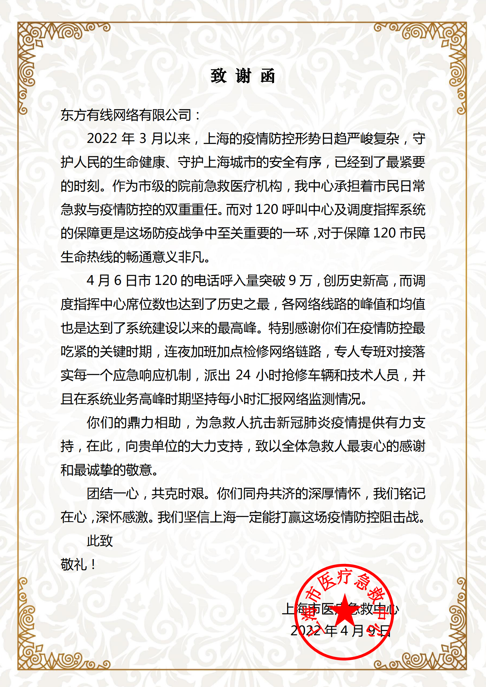 3月27日晚,东方有线在12小时内抢通互联网安全访问政务外网软件接入系统,全面保障江苏、浙江、安徽等10个援沪医疗队、超182个账号实现核酸检测结果的安全上传。截止5月9日,基于配合援沪医疗队白天检测、夜间数据集中上传的需要,东方有线共组织超200人次、连续44天不间断的通宵平台业务受理与运行监测保障。
