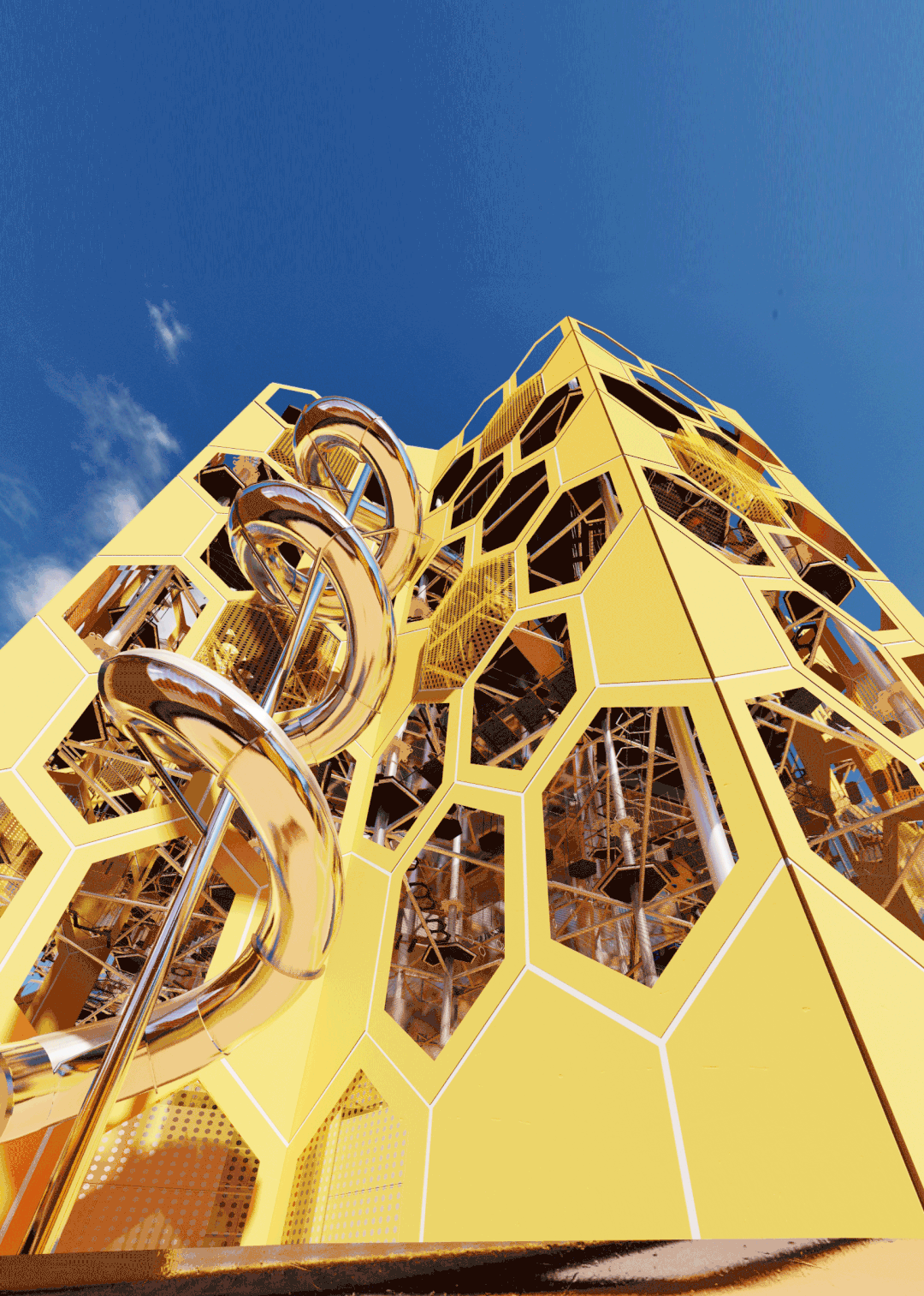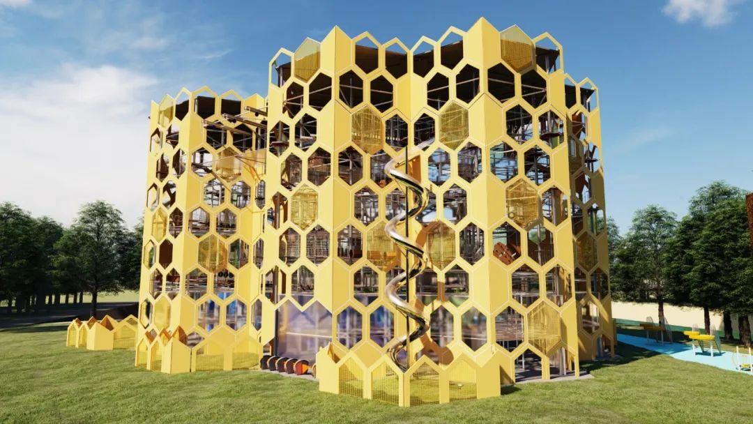 极速穿越—滑筒,半透明螺旋结构、双侧体验空间对称设计,趣味性强,瞬间可以获得风驰电掣、天旋地转的体验感。