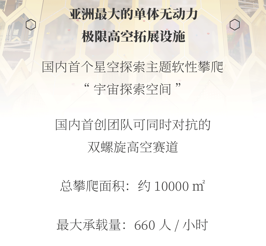 沪上文教事业和文化产业的经典地标,东方明珠新媒体旗下东方绿舟即将活力上新!一座总占地面积为2000平方米的极限高空拓展项目正在蓄力待发,预计将于今年国庆假期与广大游客见面。作为亚洲最大的单体无动力极限高空拓展设施,项目以勇气拼搏、挑战极限、绿色低碳为运动理念,全程设置超过200个关卡,包含高空赛道、宇宙探索、攀岩工厂、极速穿越等八大特色体验,将为这座广受市民游客喜爱的文旅休闲地再添精彩一笔。