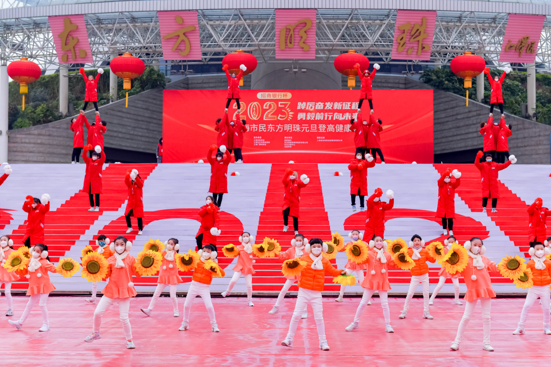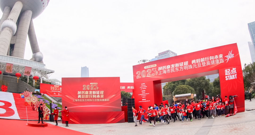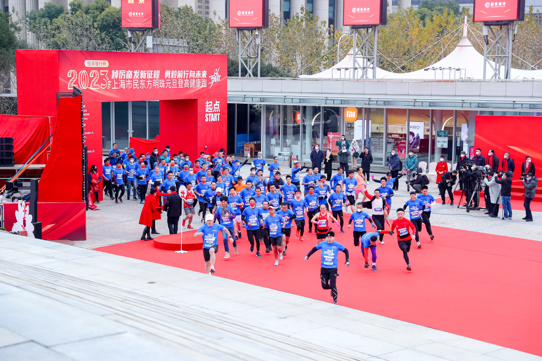 2023年1月1日上午9时,2023年上海市民东方明珠元旦登高健康跑在东方明珠广播电视塔举行。活动以“踔厉奋发新征程 勇毅前行向未来”为主题,来自社会各界300余名登高选手,分为男子组、女子组、金葵花组,从东方明珠城市广场出发,向259米全透明悬空观光廊的终点发起挑战。