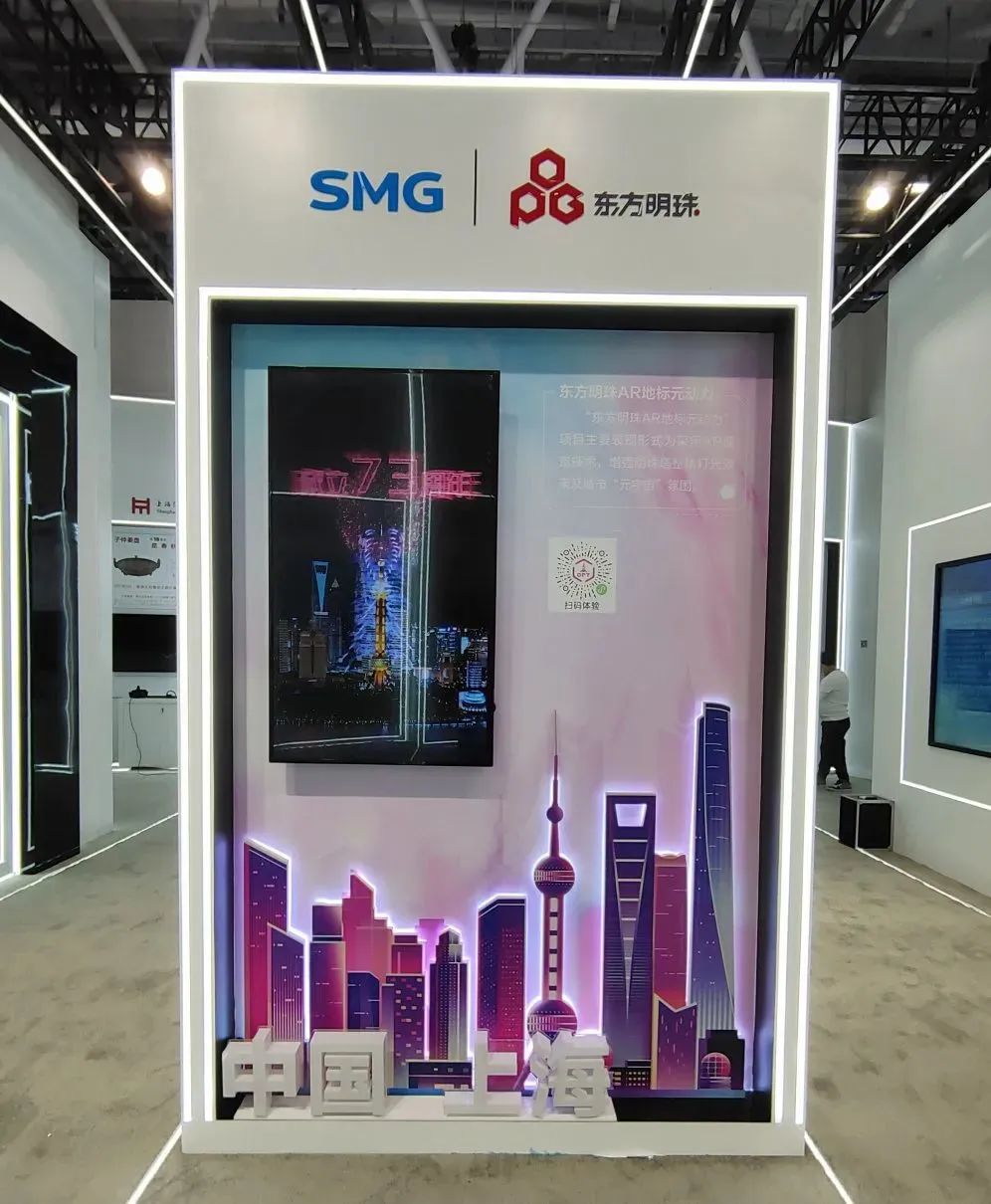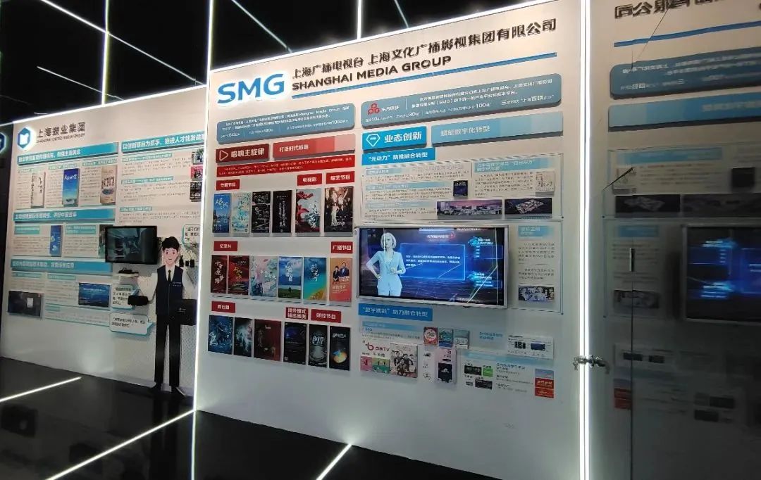 通过上海文广集团展示区的触屏交互体验,观展者可以聆听虚拟主持人“申䒕雅”的沉浸式解说,领略一场未来感十足的“数字化转型”。