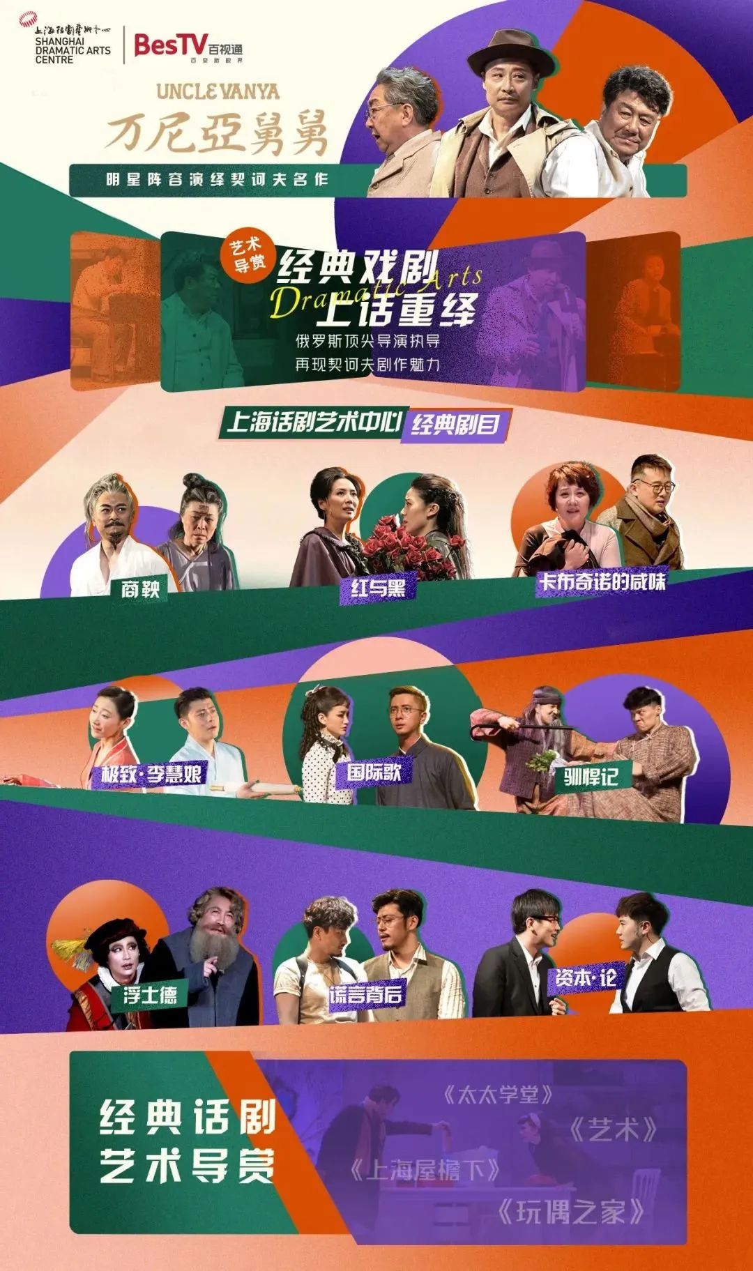 专区将为观众带来《万尼亚舅舅》《红与黑》《商鞅》《卡布奇诺的咸味》《极致·李慧娘》《国际歌》《驯悍记》《浮士德》《谎言背后》《资本·论》等10部上海话剧艺术中心出品的经典作品。不同题材,不同风格的优秀作品满足了广大话剧迷的戏瘾。