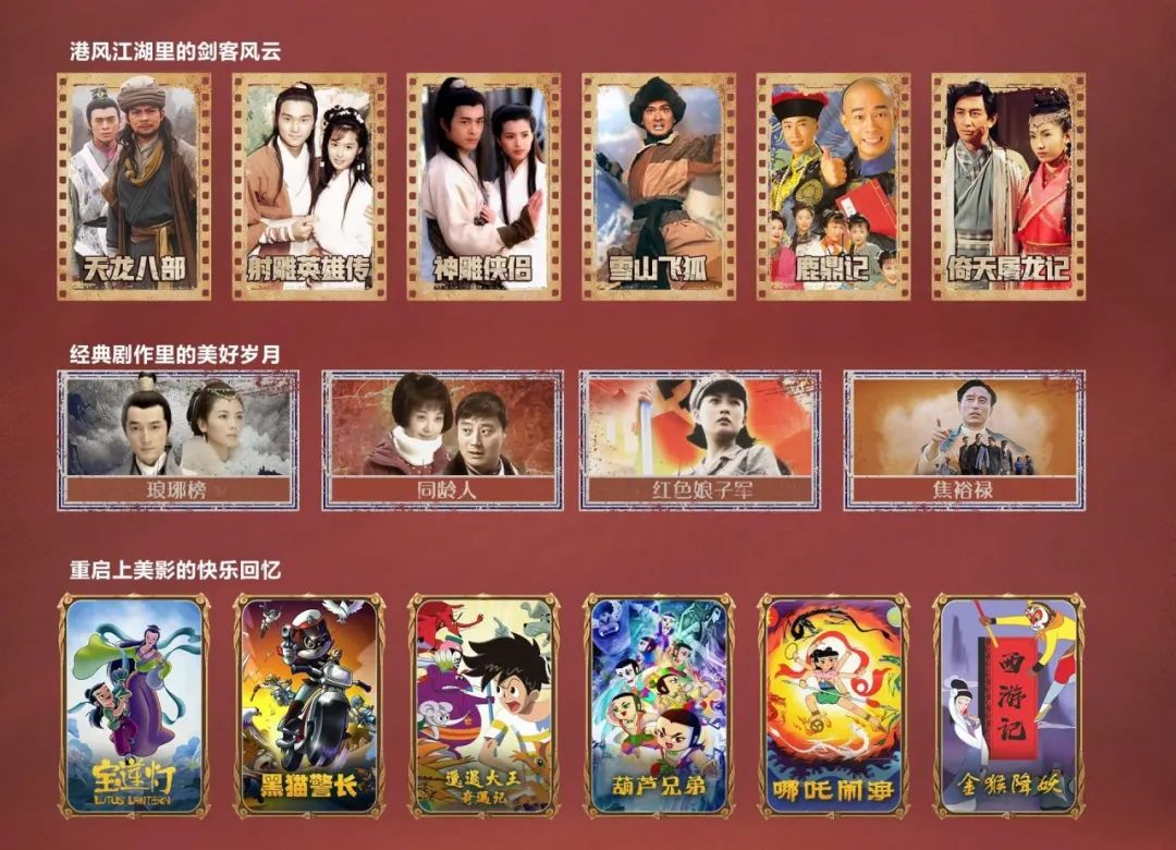 "重温经典"频道集合了包括120多部优秀经典作品。由上海广播电视台版权资产中心(上海音像资料馆)捐赠的节目中,首批入选了85版《济公》《上海的早晨》《上海一家人》和纪录片《长江之恋》四部作品,其中有两部《济公》和《上海一家人》2部电视剧进行了提质修复,四部作品的选择体现了上海特色。