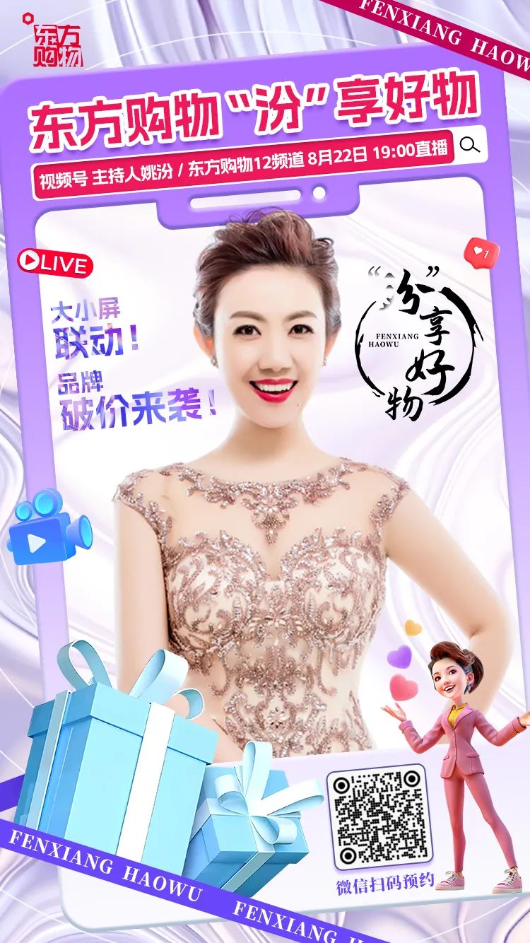 8月22日晚,东方购物将在旗下视频号进行三小时大小屏并机直播!敬请扫描下方二维码进行预约,更多优质好物与您不见不散!