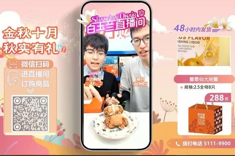 为迎接国庆中秋双节,东方购物依托“白玉兰直播间”全媒体矩阵,整合全渠道优质资源,以特色品类和满减、折扣、限时抢购等优惠营造双节消费氛围。在小屏端,17个移动端账号组成直播矩阵,每日多场直播涵盖中秋好礼、旅行装备、秋季服饰等时令优选商品,其中上海国际会议中心江景包房等产品获得热烈反响。在大屏端,东方购物11频道和12频道同步推出“国庆中秋 双节有礼”主题活动,集中展示月饼、节日礼盒、秋冬滋补品等应季商品,并实现老庙黄金本色生肖金条新品首发,以独家内容强化大屏吸引力。