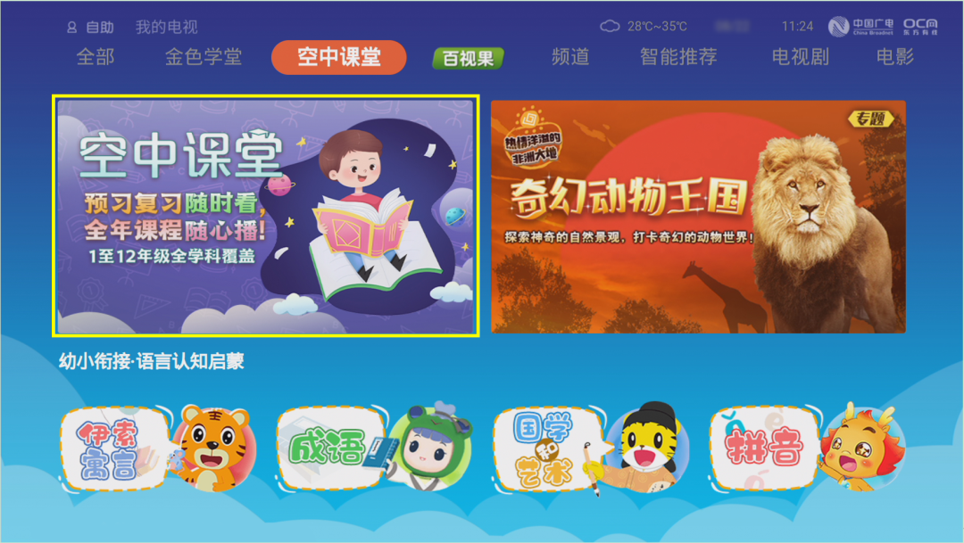 为了让广大师生了解“空中课堂”全新服务方式的收看路径,“空中课堂”12个直播频道自9月1日起至频道停播之日止将播放标板收看指南。