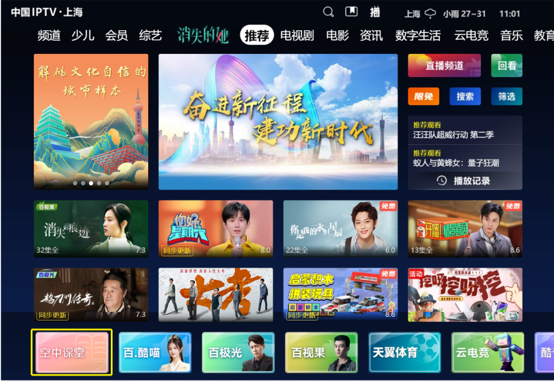 作为上海市教委与上海广播电视台合作打造的特色教育品牌,“上海空中课堂”自2020年开播以来,持续为百万学子提供画质稳定、播放流畅、操作便捷的课程服务,逐步成为上海市中小学生课堂教学的重要补充。