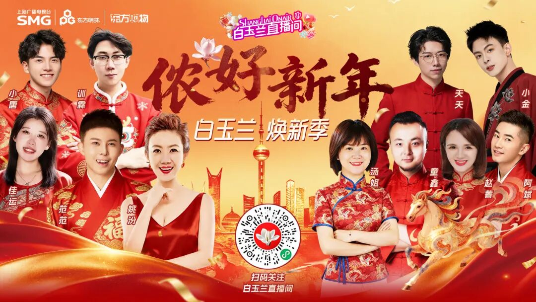 白玉兰直播间推出珠宝、新年服饰、高端生鲜等“好礼”,搭配本地餐饮兑换券满足多样需求。各账号矩阵还准备了“新年大餐筹备”“春节穿搭指南”“年货测评”等实用内容,方便消费者“种草”;直播前的“幕后探厂”溯源短视频,将展示制作流程等,让年货节礼买得放心和舒心。